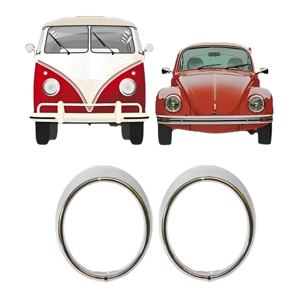Renove o visual do seu clássico com elegância e originalidade! O Par de Aros Moldura Cromados para Farol é a escolha ideal para quem busca restaurar ou valorizar o estilo do Fusca e da Kombi, mantendo o padrão original e garantindo um acabamento brilhante de alta durabilidade.