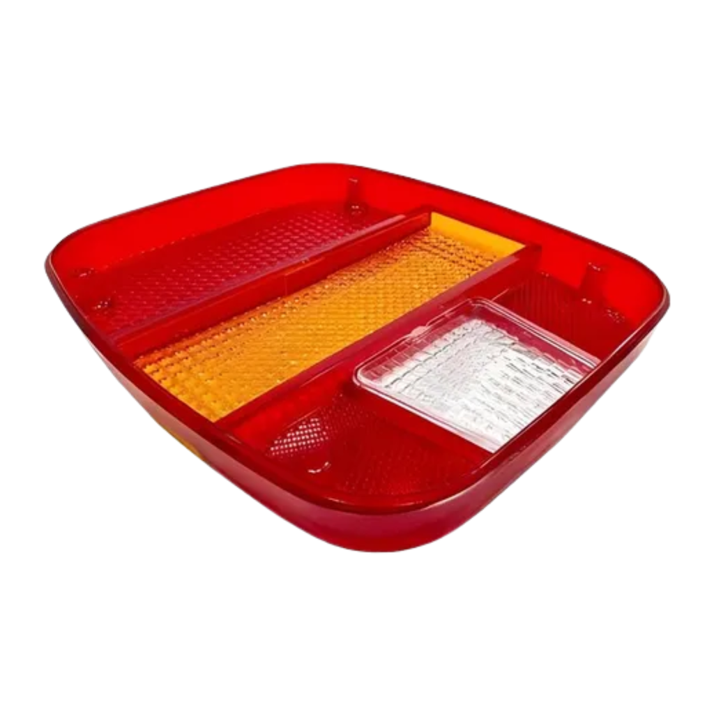 Garanta segurança e originalidade ao seu caminhão com a Lente Traseira compatível com caminhões Ford Tradicional, também conhecida como modelo "marmitão". Fabricada com materiais de alta durabilidade, esta lente oferece resistência às intempéries e excelente vedação contra poeira e umidade, preservando o funcionamento das luzes de freio, seta e lanterna traseira.